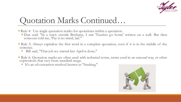 Punctuation quotes mid sentence. Avoid this invalid usage. In each of these sample sentences the speaker tag interrupts the quotation. Don t capitalize quotes that are only partial sentences. In the middle of a sentence.